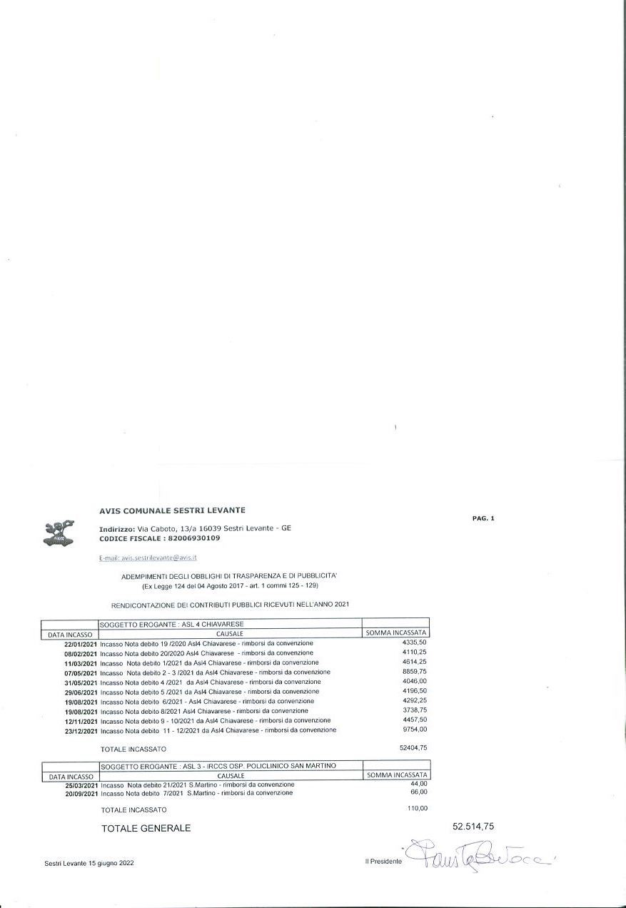 Grave lutto per l’Avis di Sestri Levante a causa della prematura scomparsa del suo Presidente che per anni ha diretto l’Avis comunale sestrese e l’Avis provinciale di Genova. A lui verrà successivamente dedicata la sede di Riva Trigoso.